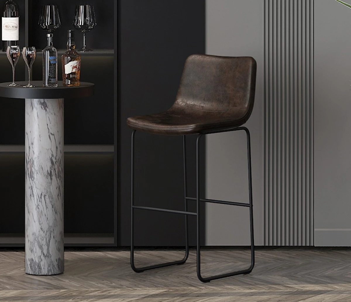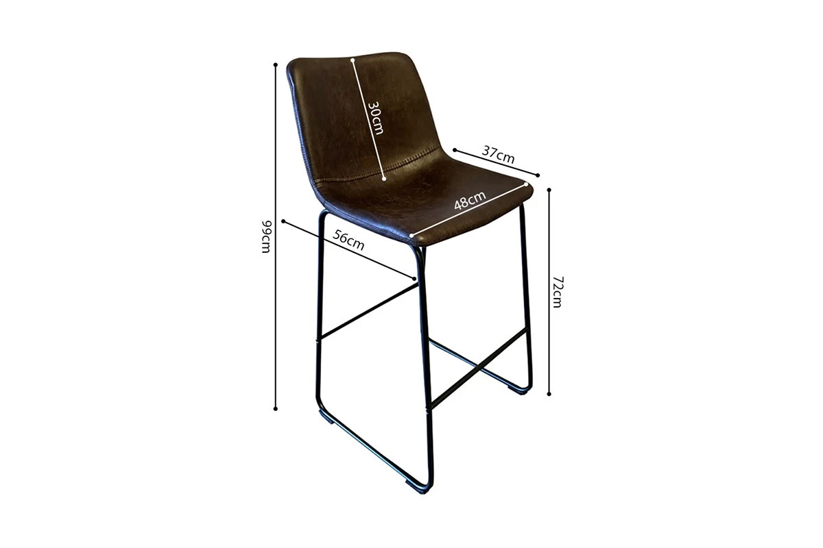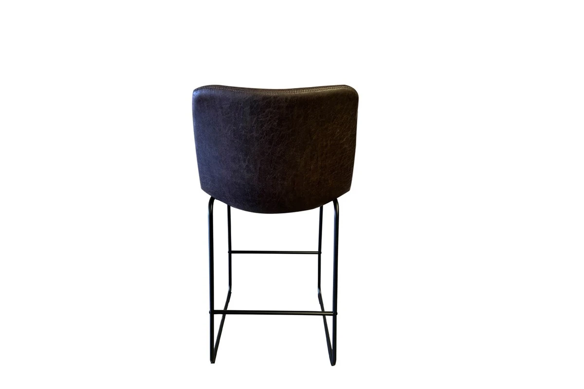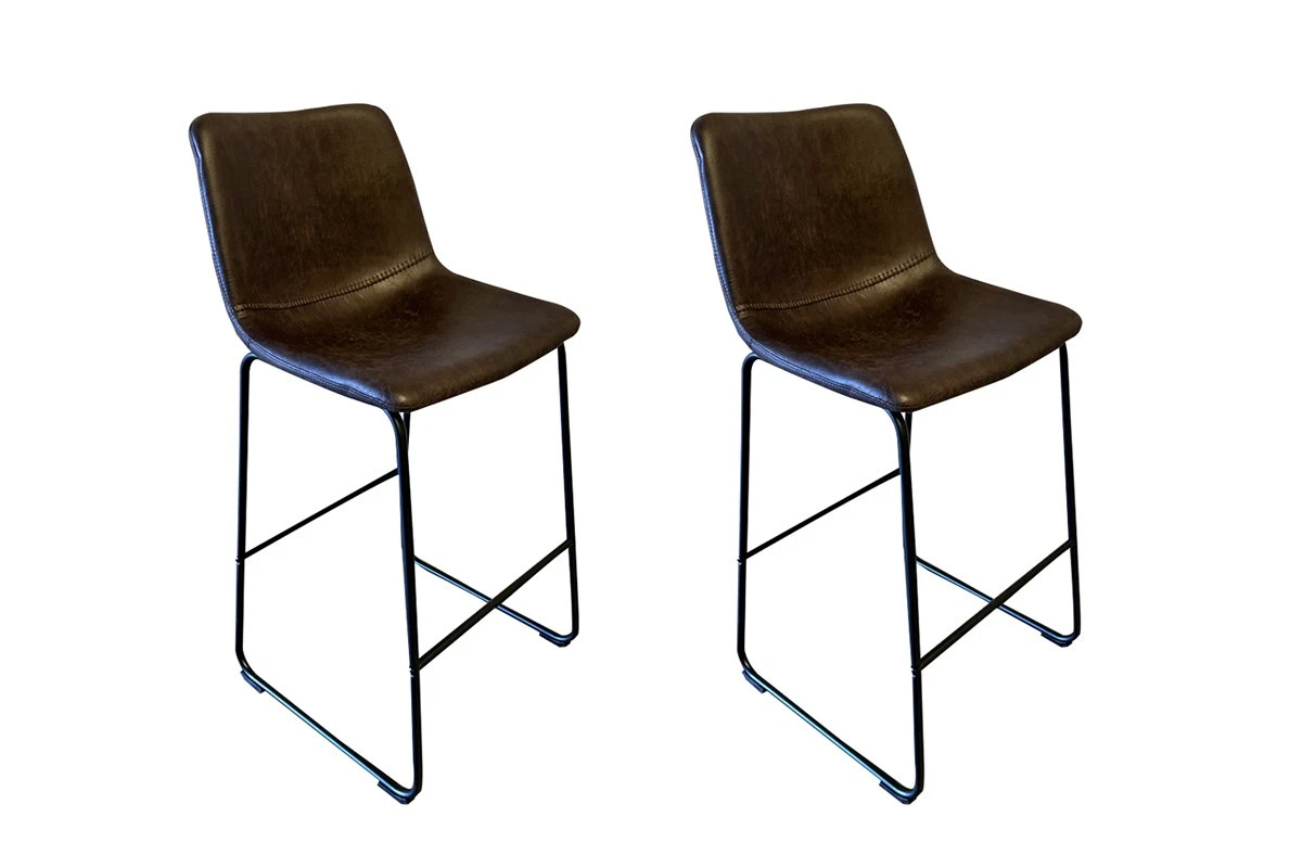 Prachtige set van 2 barstoelen MANCIA 5610 in donkerbruin kunstleer. Met zijn zichtbare stiknaden en zwarte metalen poot haal je de industriële geest in huis!