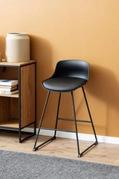 De TINA barstoel heeft een zwarte polypropyleen rugleuning en een zwarte kunstlederen zitting. Zijn elegante zwarte metalen poten geven hem een unieke en chique stijl om uw huis in te richten. Verkocht per 2.