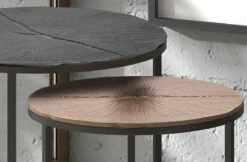 Geef uw interieur een boost met deze bijzettafels MAGRITE. Het mooie ronde blad is gemaakt van metaal, samen met het zwart metalen frame, zorgt dat voor een stijlvolle en rustieke uitstraling.