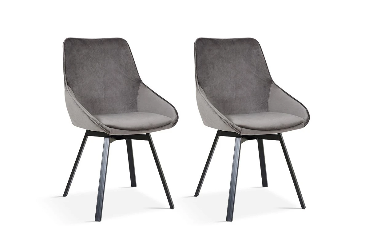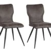 Met deze set van 2 stoelen MATHIAS 90040-5 kan je genieten van een optimaal zitcomfort dankzij z’n zachte stoffen bekleding in kleur grijs en z’n poten in zwart metaal. Mogelijk in meerdere kleuren. Verkocht per 2 stoelen.