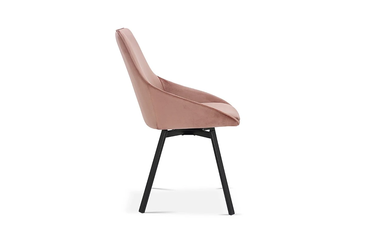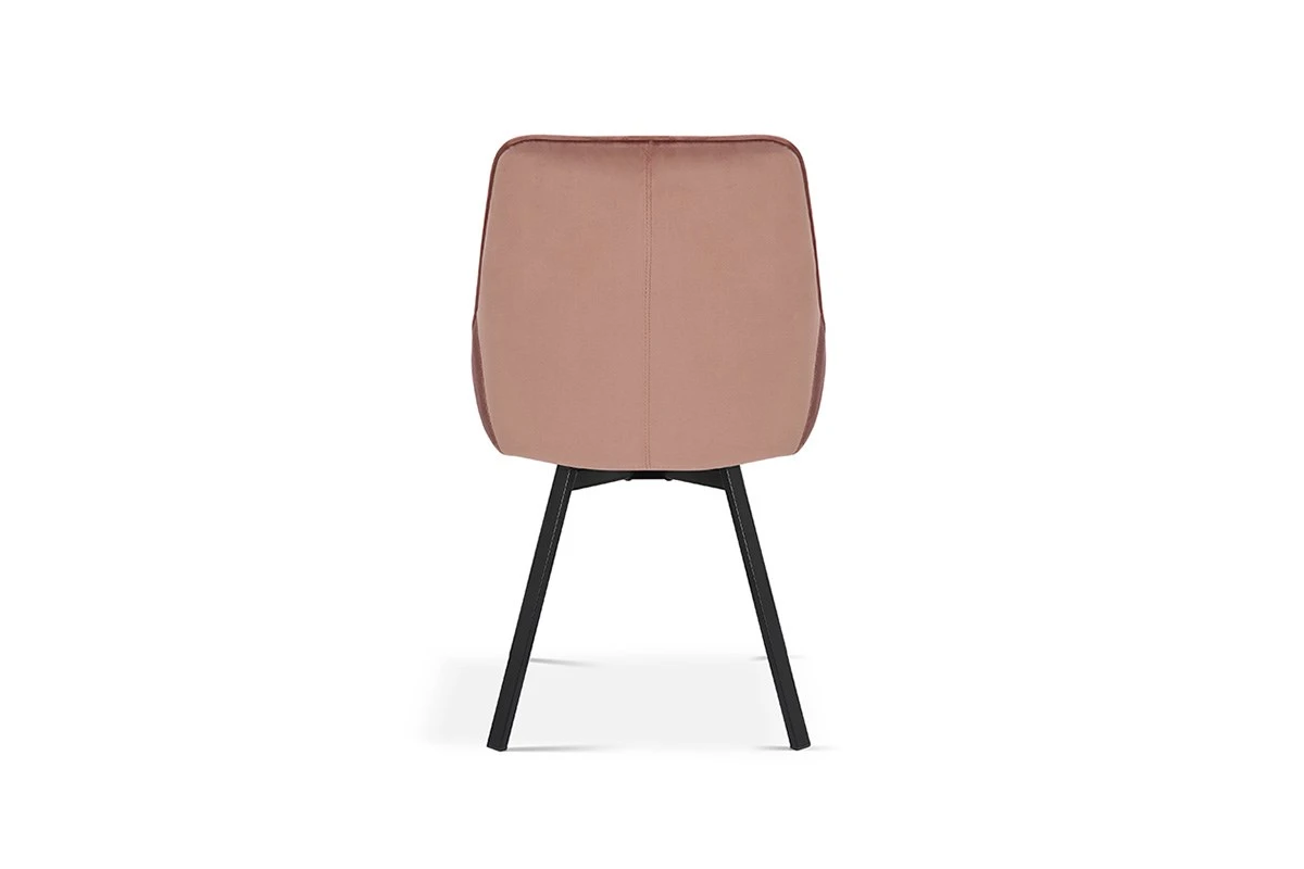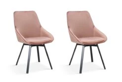 Met deze set van 2 stoelen MATHIAS 90040-3 kan je genieten van een optimaal zitcomfort dankzij z’n zachte stoffen bekleding in kleur roze en z’n poten in zwart metaal. Mogelijk in meerdere kleuren. Verkocht per 2 stoelen.