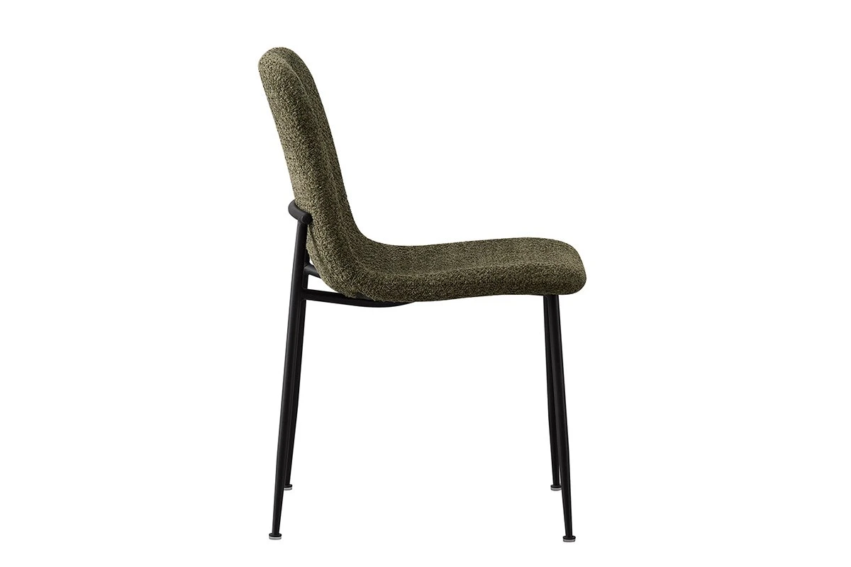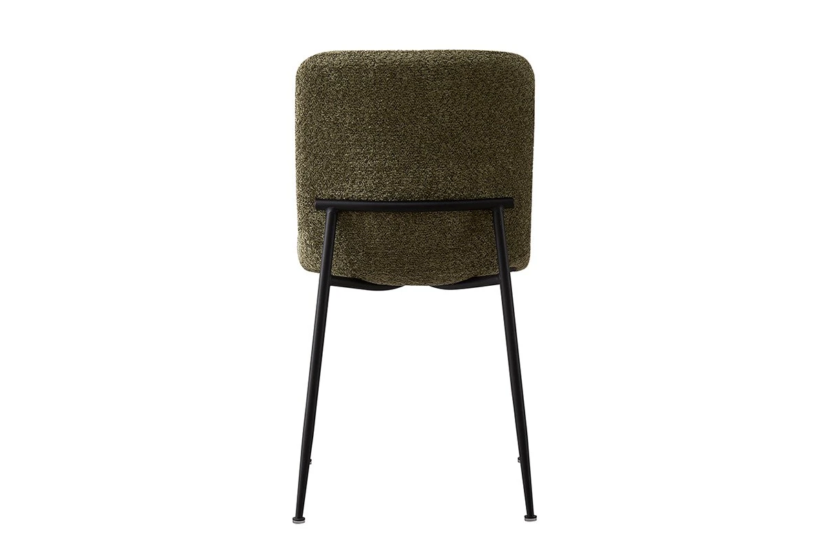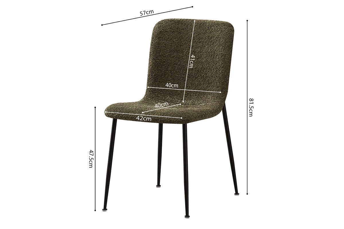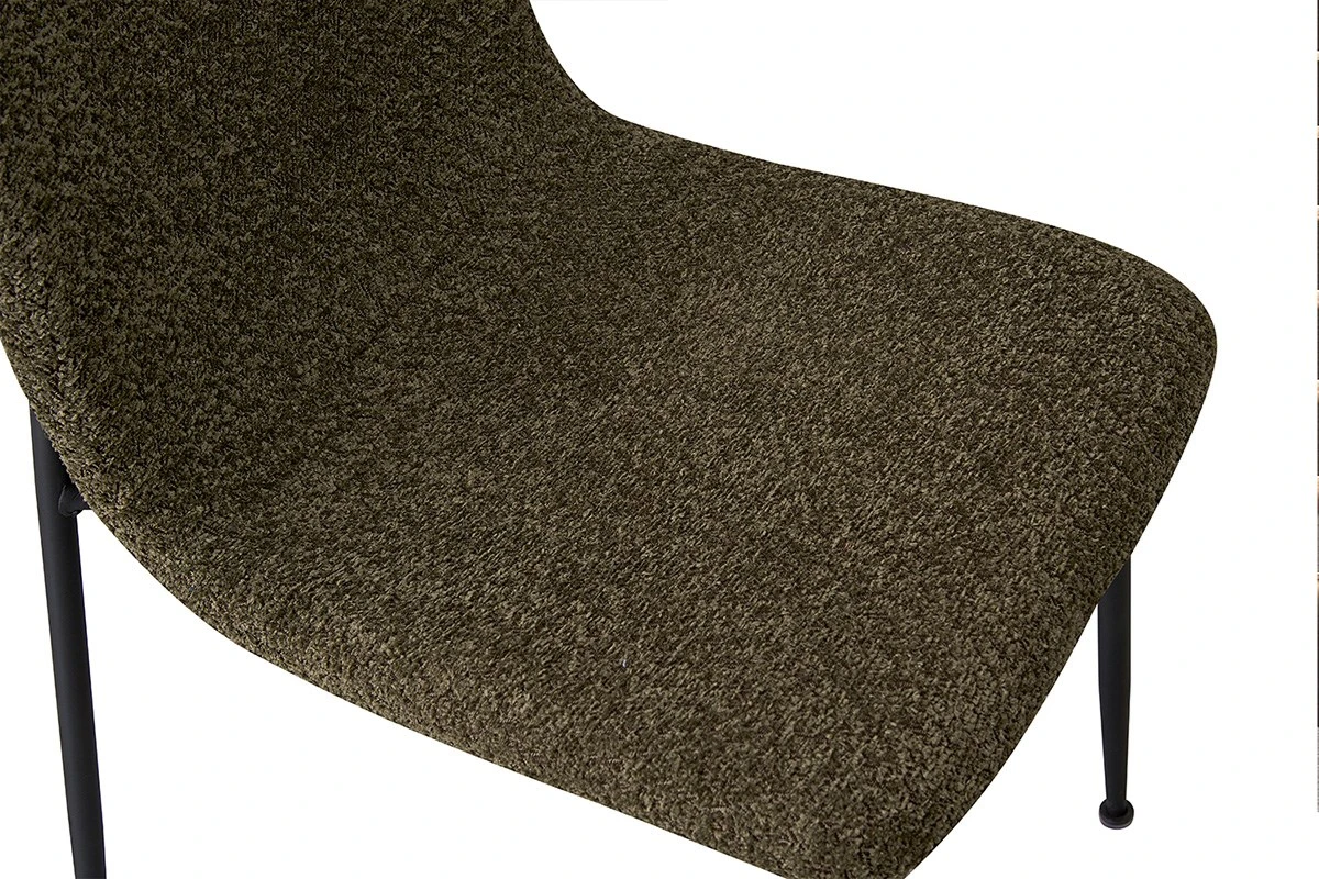 Schitterende set van 2 ALICE stoelen, bekleed met Groen bouclé stof. Met zijn badstof-effect stof en 4 zwarte metalen poten, zal de ALICE stoel je zeker comfortabel en stijlvol laten zitten!