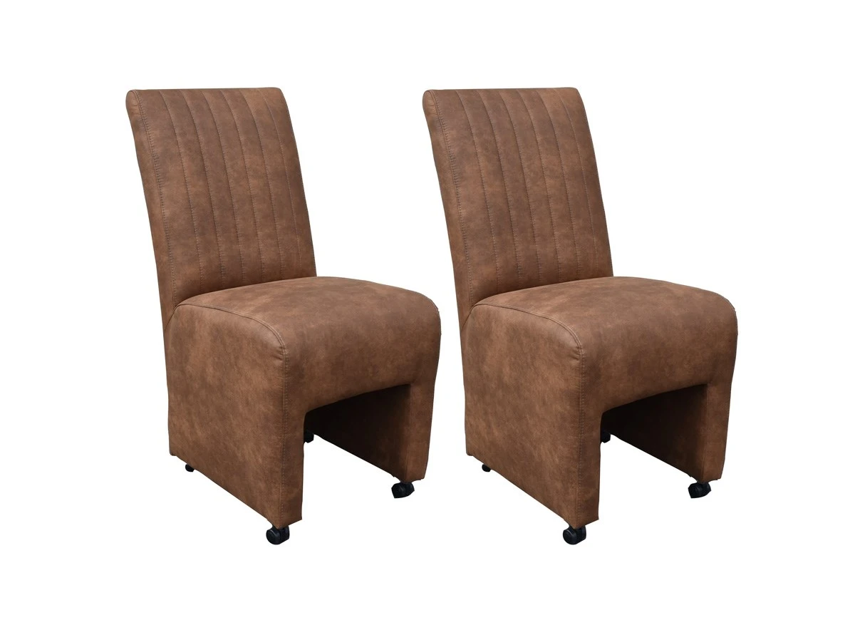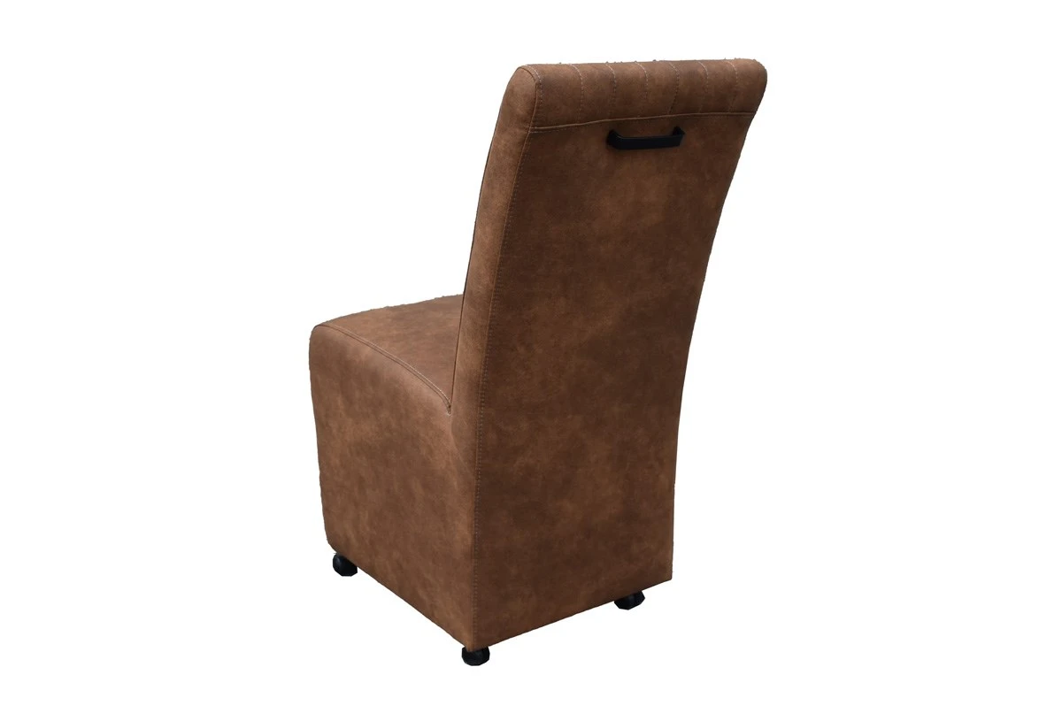 Comfortabele woonkamerstoel FIESTA in stof Preston in de kleur Cognac. Dankzij de wieltjes kan je de stoel gemakkelijk doorheen de ruimte verplaatsen.