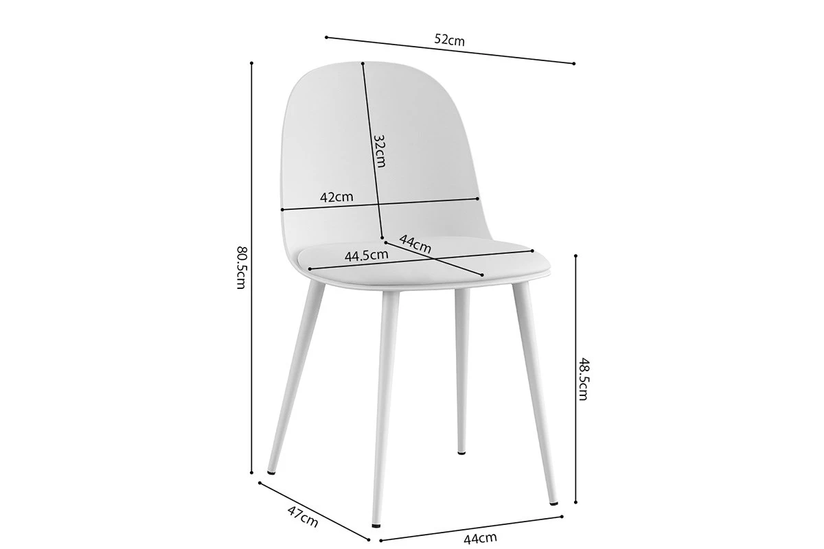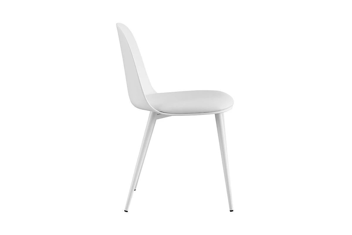 Prachtige set van 2 stoelen JASMIN, in Wit. Met een lichtgewicht, zacht aanvoelende polypropyleen rugleuning, een beklede zitting bedekt met kunstleer voor optimaal comfort, en 4 stevige metalen poten! De perfecte mix voor een stijlvol interieur dat lang meegaat!