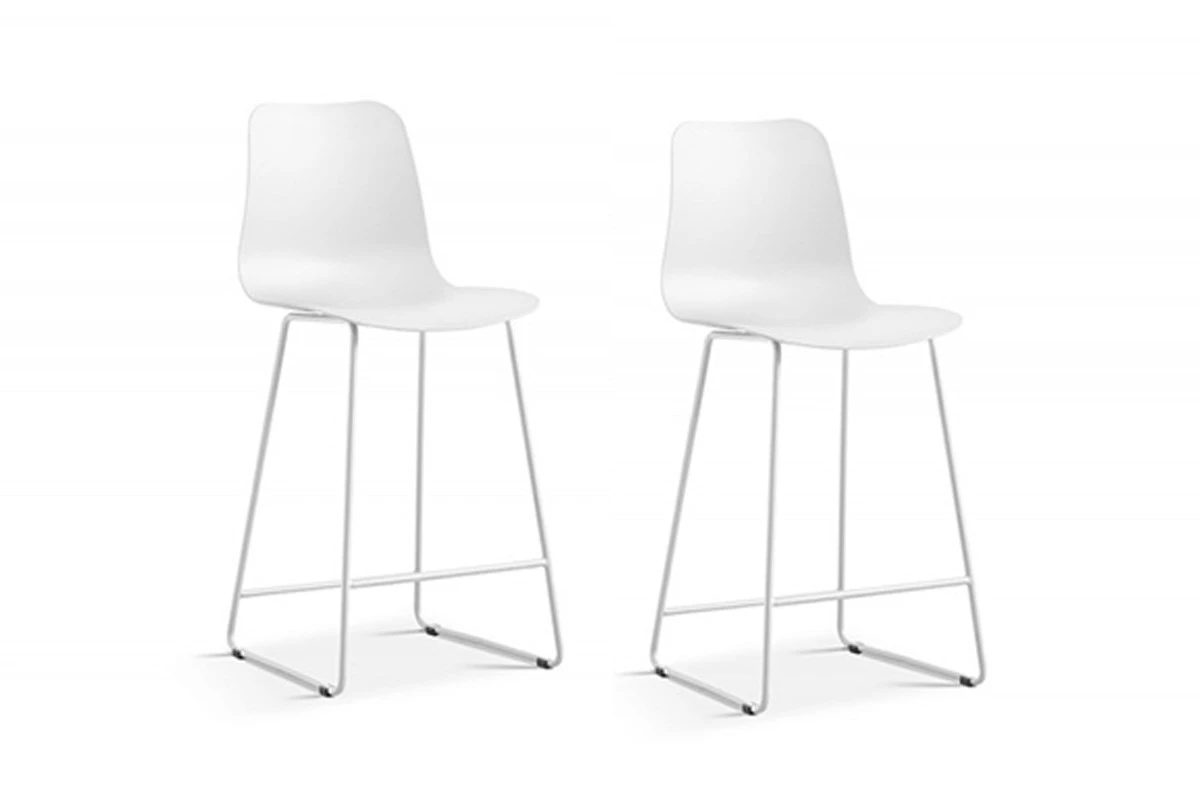 Leuke set van 2 barstoelen MARIE 5550 in kunststof wit met designvolle stoelpoten. De set Marie is verkrijgbaar in diverse kleuren. Verkocht per set van 2 stoelen.