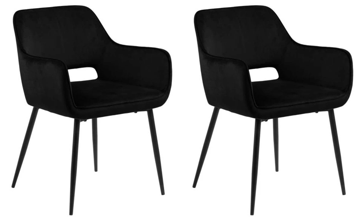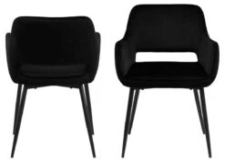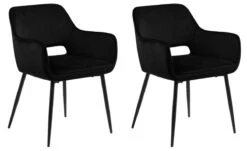 Wat een klasse! Deze prachtige set van 2 stoelen RANJA weet iedereen te bekoren. Deze stoel is in stof zwart waardoor deze ontzettend zacht aanvoelt. De armleuningen zorgen bovendien voor extra zitcomfort.