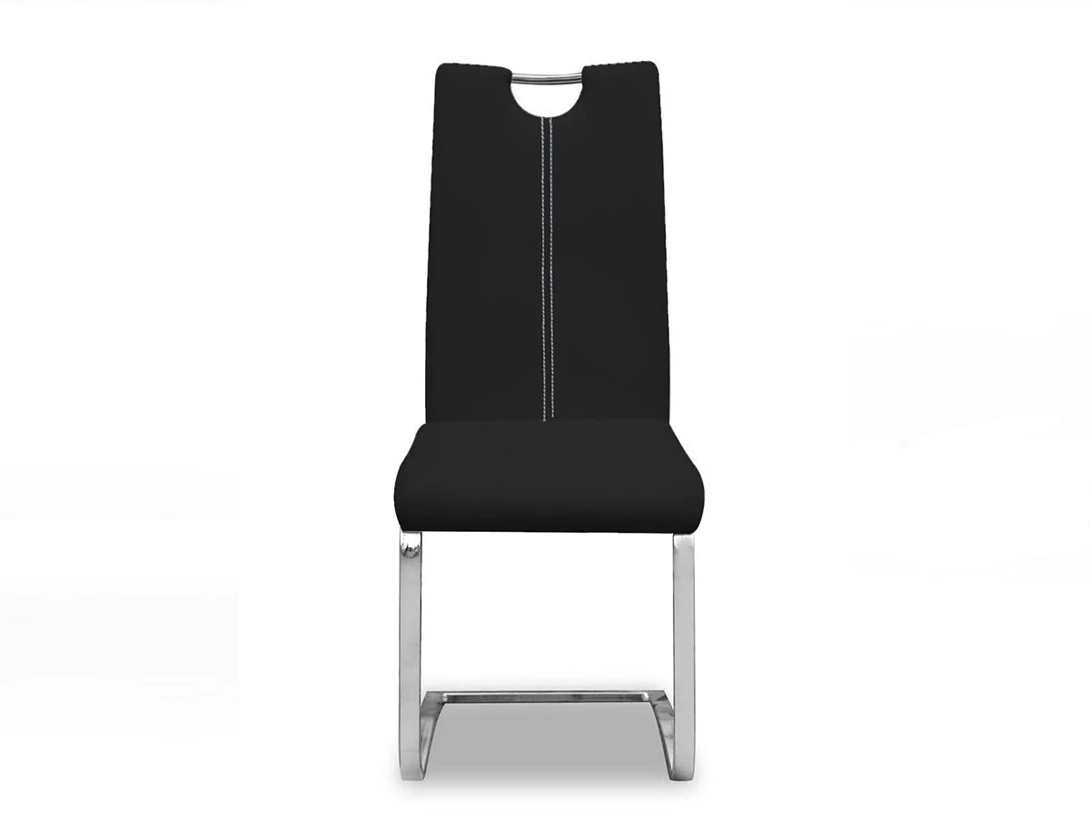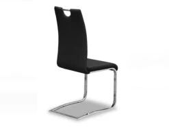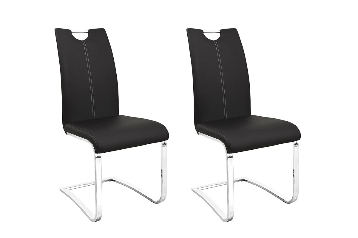 Deze set van 2 stoelen SOFIA 9601-2 zorgt voor een moderne toets in de woonkamer dankzij z’n zwart kunstlederen bekledig en z’n poten in chroom. Mogelijk in meerdere kleuren. Verkocht per 2 stoelen.