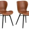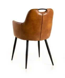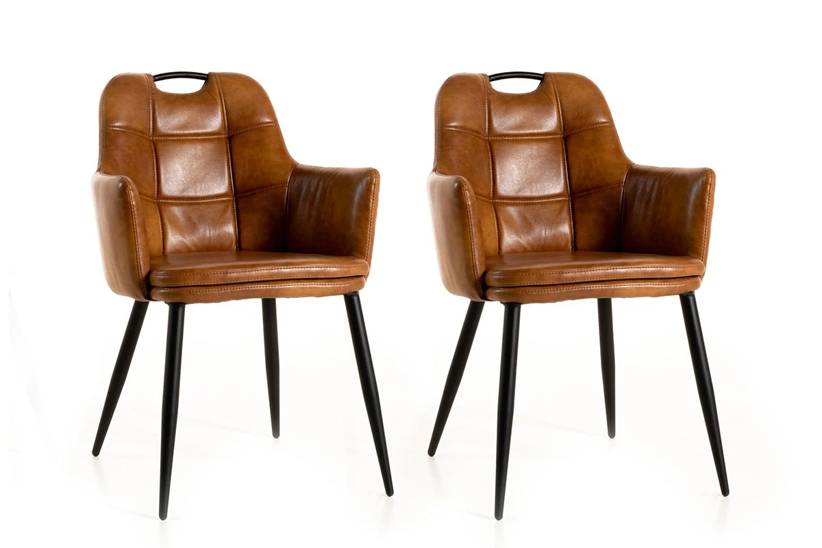 Set van 2 prachtige stoelen in cognac kunstleder. Z’n praktisch handvat en stijlvolle poten maken deze stoel tot een onmisbaar stuk!