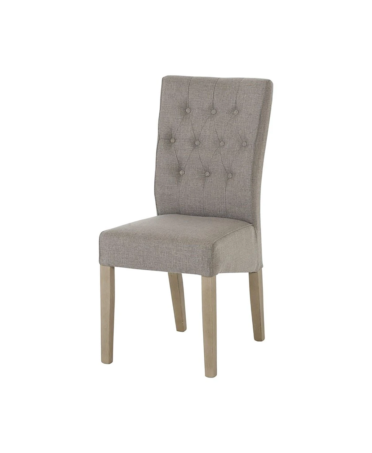 De stoel YORK in bruin gekleurde stof heeft een gecaptioneerde rugleuning. Deze stoel zit comfortabel en past in zowel landelijke als hedendaagse interieurs.