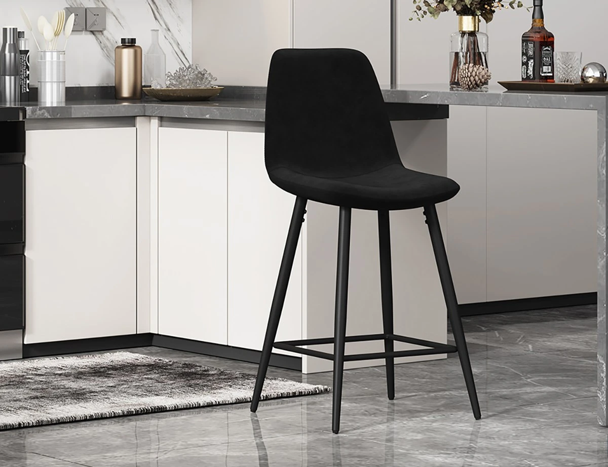 Deze set van 4 barstoelen BOY 5545 in zwarte kleur straalt klasse uit dankzij z’n zachte fluwelen bekleding en z’n zwart metalen poten. Mogelijk in meedere kleuren. Verkocht per 4 stoelen.