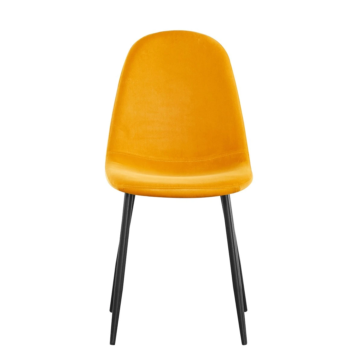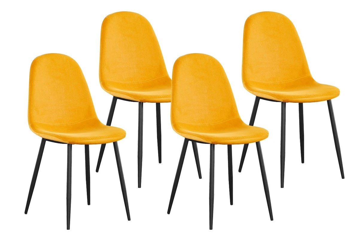 Deze set van 4 stoelen BOY 9090-4 in gele kleur straalt klasse uit dankzij z’n zachte fluwelen bekleding en z’n zwart metalen poten. Mogelijk in meerdere kleuren. Verkocht per 4 stoelen.