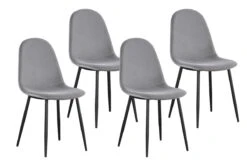 Deze set van 4 stoelen BOY 9090-3 in grijze kleur straalt klasse uit dankzij z’n zachte fluwelen bekleding en z’n zwart metalen poten. Mogelijk in meerdere kleuren. Verkocht per 4 stoelen.