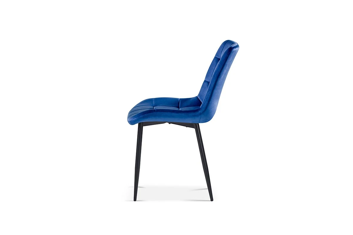 Leuke set van 4 stoelen JUTA die perfect staan in elk interieur. De stoelen zijn gerealiseerd in blauwe stof gecombineerd met zwarte metalen poten.Verstelbare voetdoppen voor stabiliteit. Verkrijgbaar in meerdere kleuren.