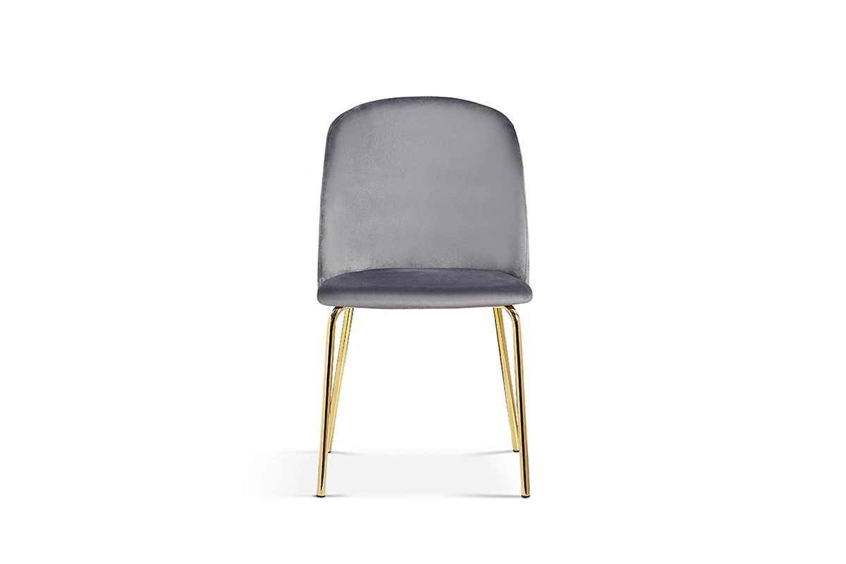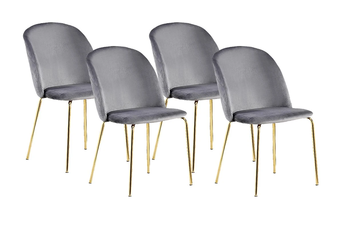 Leuke set van 4 stoelen LENA die perfect staan in elk interieur. De stoelen zijn gerealiseerd in grijze velours gecombineerd met goudkleurige metalen poten. Verkrijgbaar in meerdere kleuren.