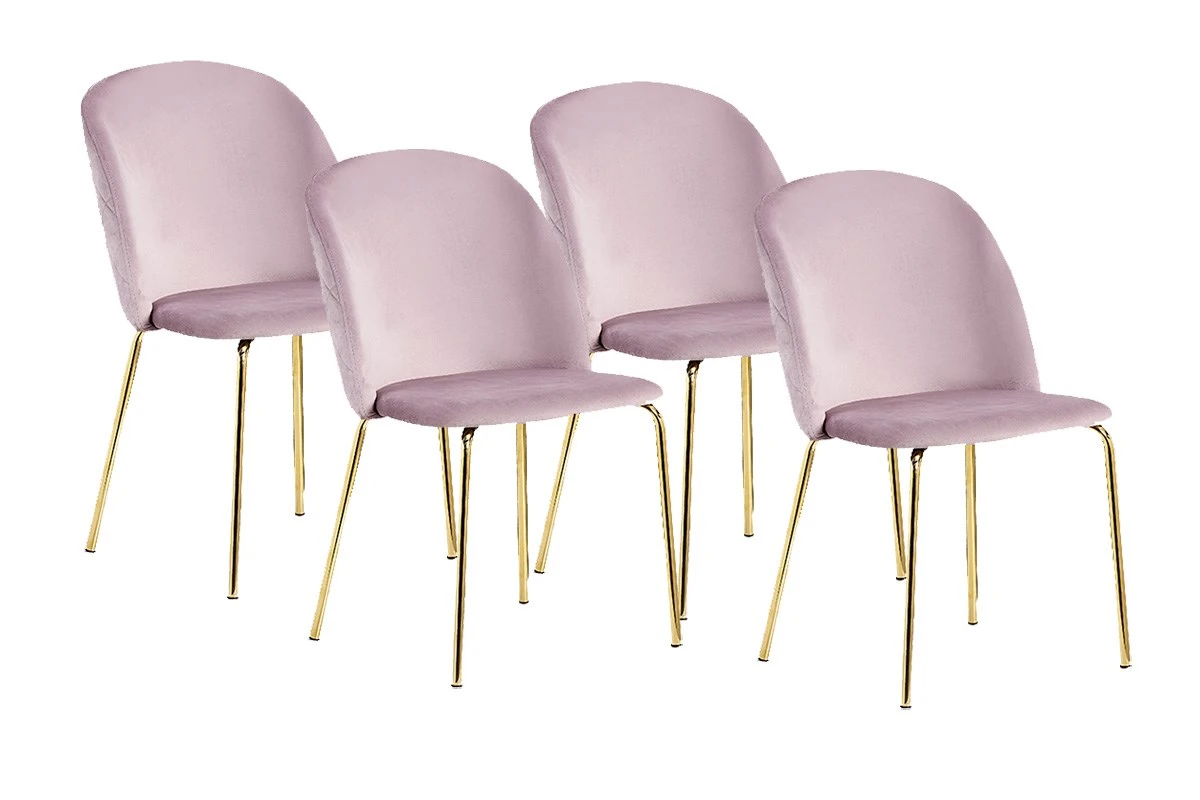 Leuke set van 4 stoelen LENA die perfect staan in elk interieur. De stoelen zijn gerealiseerd in roze velours gecombineerd met goudkleurige metalen poten. Verkrijgbaar in meerdere kleuren.