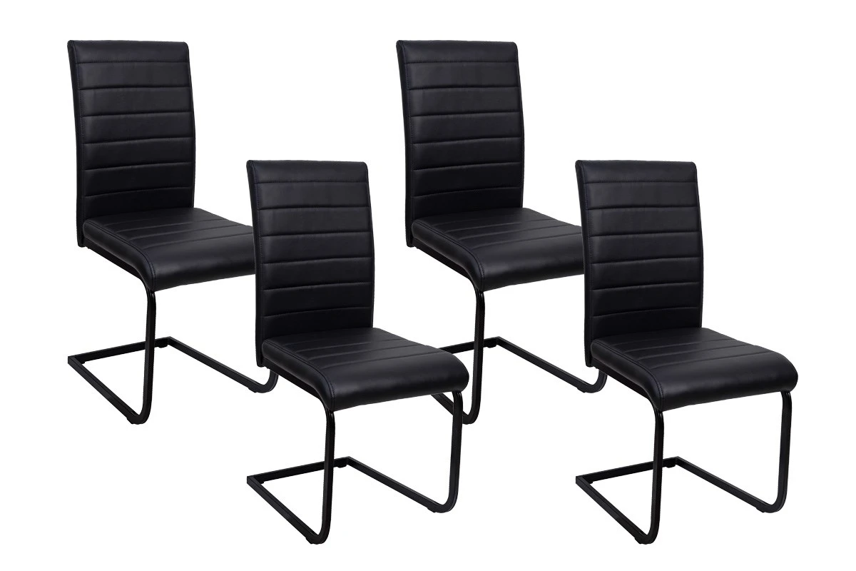 Mooie set van 4 stoelen S210 in zwarte PU en zwarte metalen poten.