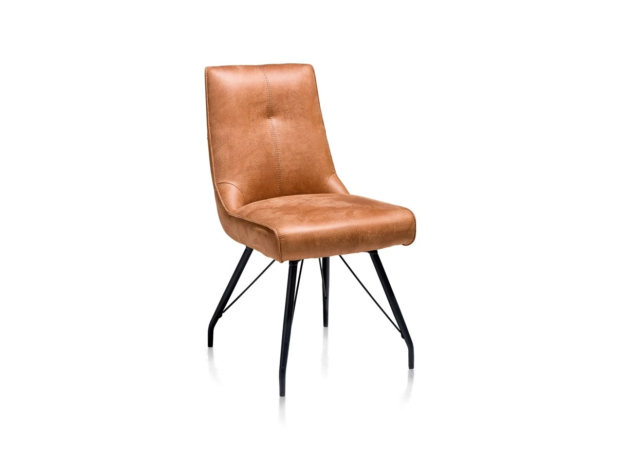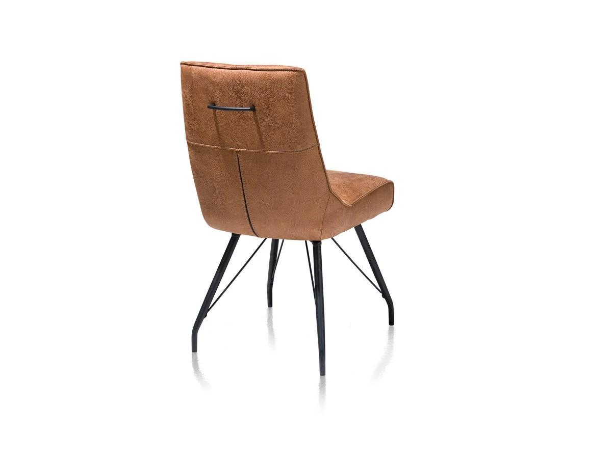 Stoel BOGARD in stof kleur cognac combineert een klassieke frame met eigentijds design. Aan de achterkant van de rugleuning heb je een handvat zodat je de stoel eenvoudig kan verplaatsen. Voorzien van zwart metalen poten. BOGARD is mogelijk in meerdere kleuren.