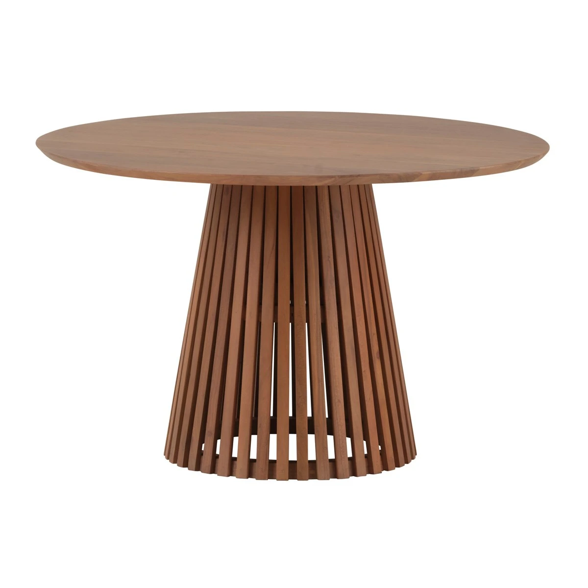 Moderne eettafel BURUNDI is een ronde tafel van natuurlijk acaciahout. De poot van de tafel is van houten latten, echt stijlvol! Deze mooie tafel BURUNDI is verkrijgbaar in 120 en 130 cm én in verschillende kleuren.