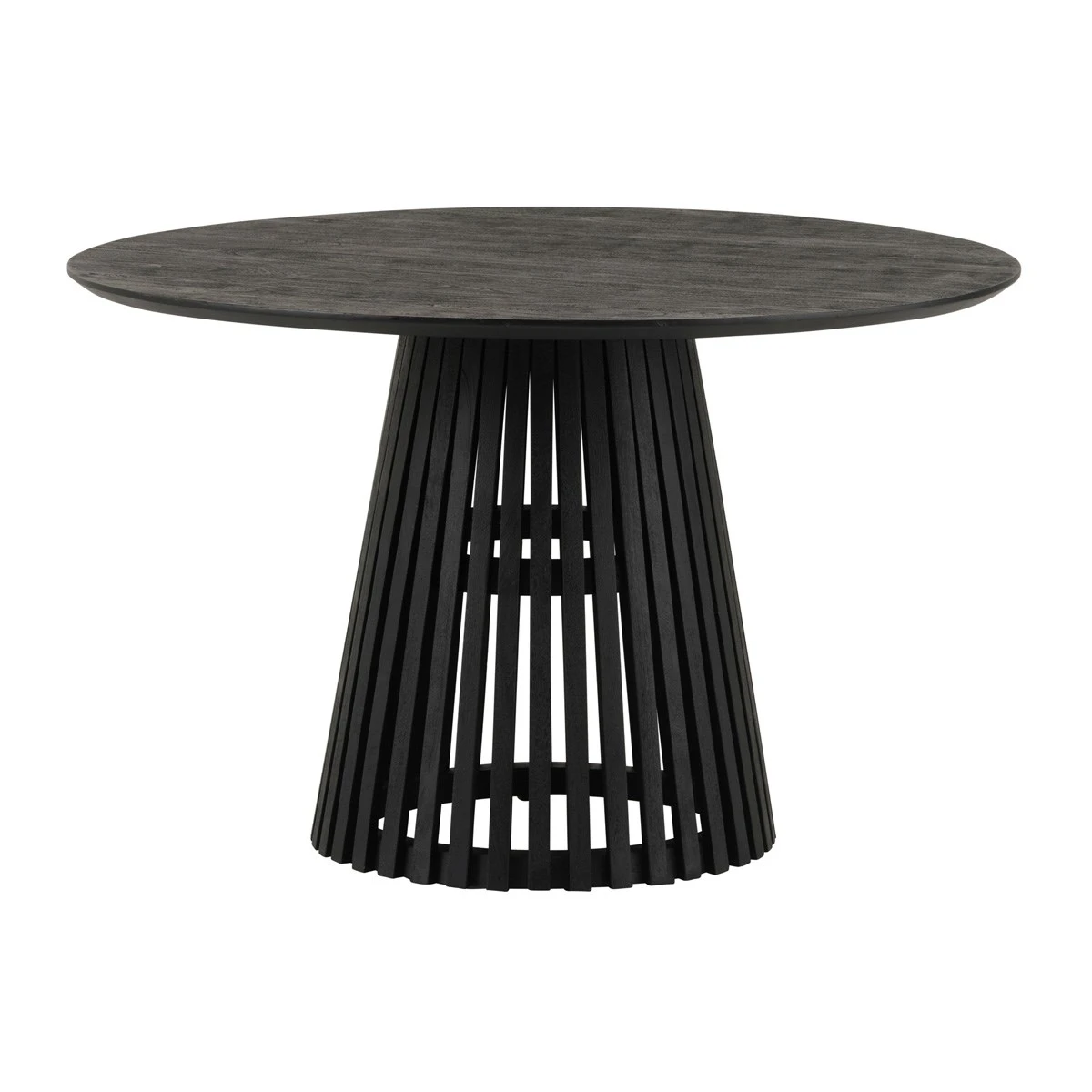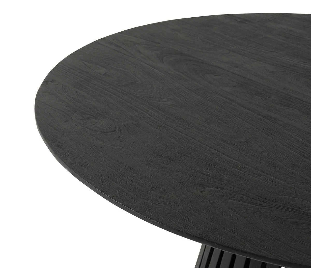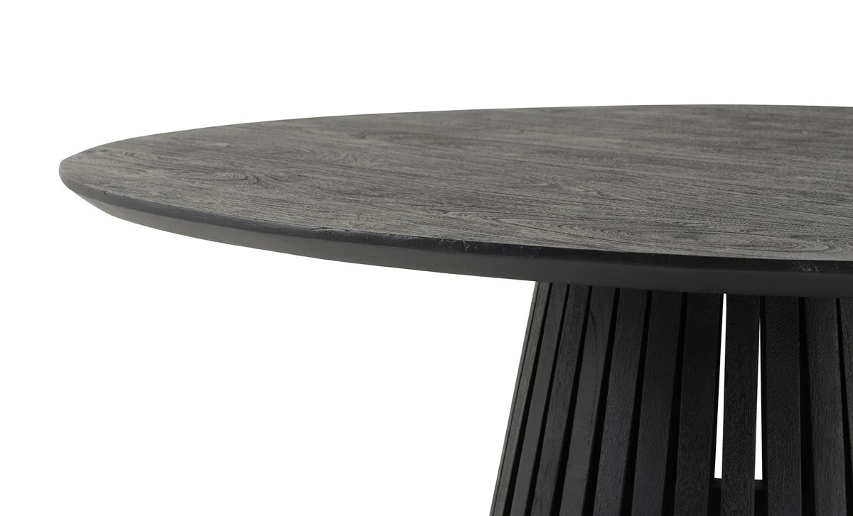 Moderne eettafel BURUNDI is een ronde tafel van zwart acaciahout. De poot van de tafel is van houten latten, echt stijlvol! Deze mooie tafel BURUNDI is verkrijgbaar in 120 en 130 cm én in verschillende kleuren.