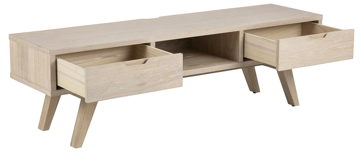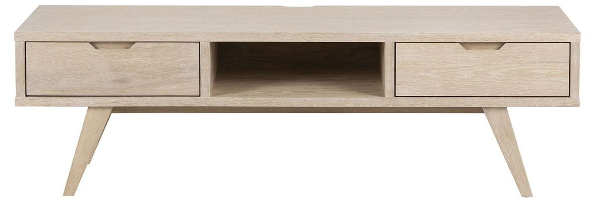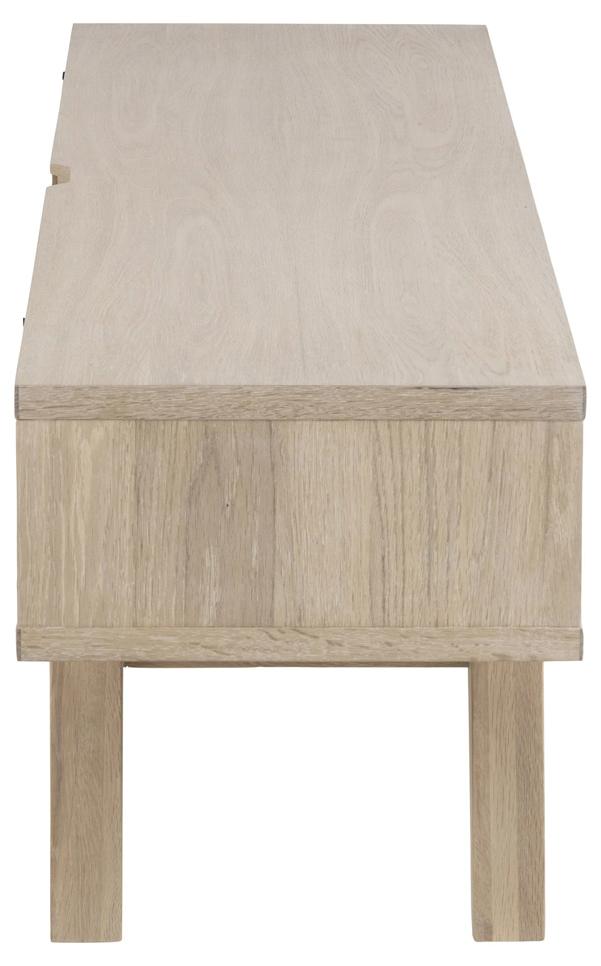 Ontdek het TV meubel uit de A-Line collectie, die Scandinavische esthetiek combineert met eigentijds design. Uitgerust met 2 laden en 1 nis, heeft het een elegant wit gepigmenteerd geolied eiken fineer.