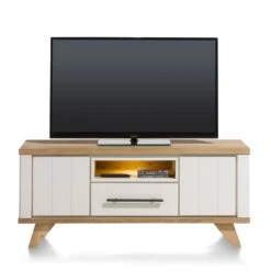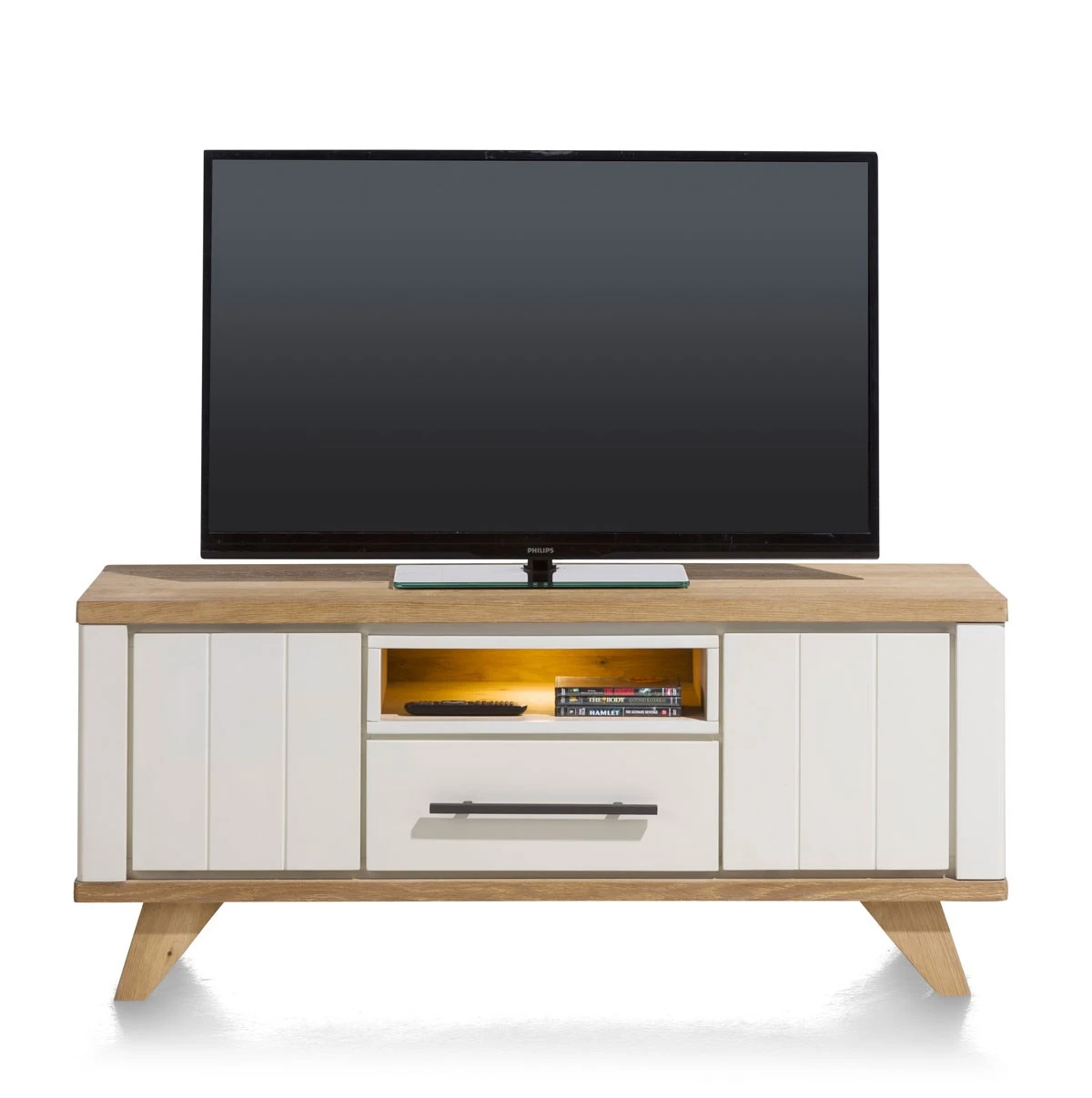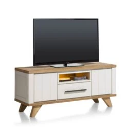 Het TV meubel uit de collectie JARDIN heeft een authentieke stijl. Hij is gerealiseerd in massief en fineer eikenhout met MDF in witte kleur. Ook mogelijk met MDF in antraciet. Dit meubel is voorzien van 2 deuren, 1 lade en 1 nis met LED verlichting voorzien van een softclose. Combineer het TV meubel JARDIN met andere meubelen uit dezelfde reeks.