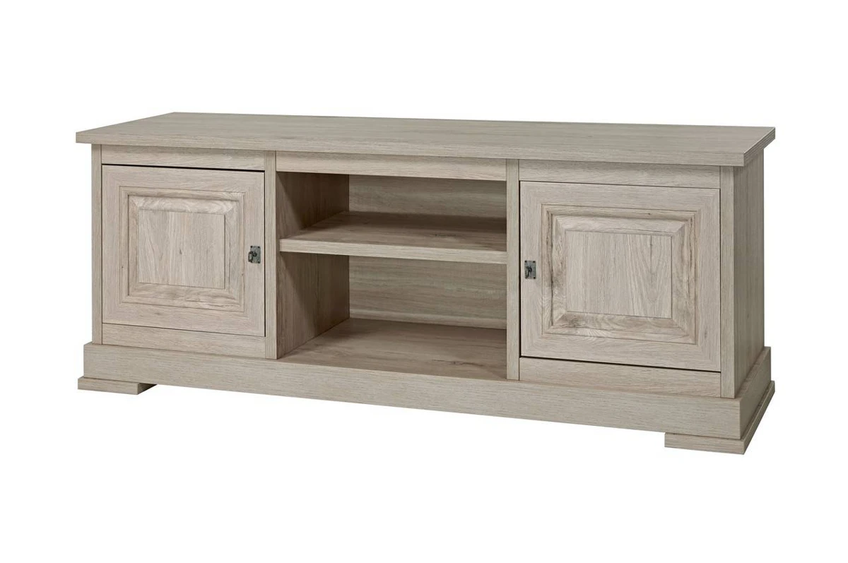 Praktisch TV meubel met 2 deuren en 2 open vakkendie behoort tot de woonkamer KENT, gerealiseerd in melamine imitatie hout. Bovendien vult Kent de leefruimte met een warme sfeer. Combineer dit TV meubel met andere meubelen uit dezelfde serie.
