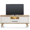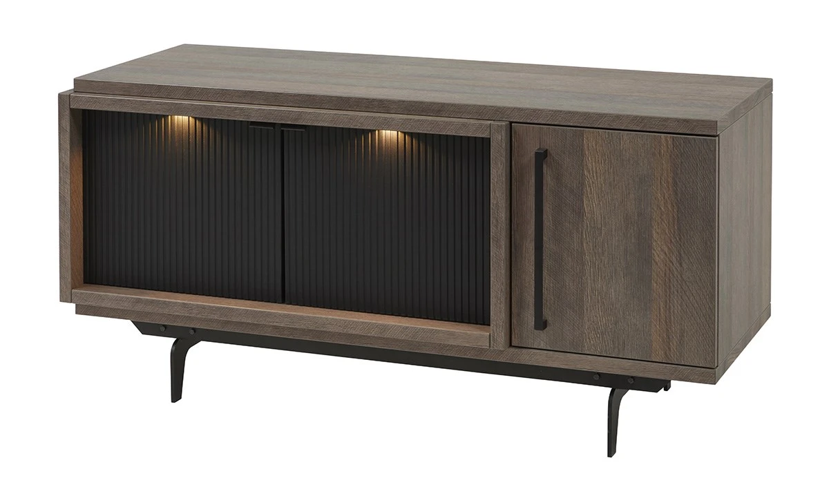 Het prachtige TV meubel TRENTINO 131cm heeft 3 deuren. Met zijn kleur golden oak en matzwarte details, past hij makkelijk in elk modern interieur.