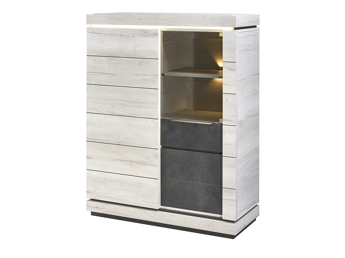 De vitrine BIRGER is gemaakt van melamine. Dit meubilair is kras- en slijtvast. Hij is ook gemakkelijk te onderhouden. De vitrine heeft 1 glasdeur. De LED verlichting is inbegrepen.