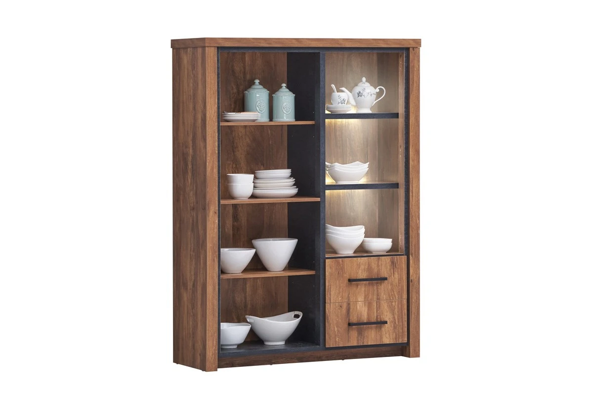 De ENSOR acaciahouten vitrinekast: natuurlijke elegantie en mooie soberheid. In de woonkamer is hier al het servies georganiseerd, waarbij de mooiste stukken zijn gekozen voor het glazen gedeelte. De zachtheid van zijn donkerbruine kleur laat alle stijlcombinaties toe. Combineer de vitrine met de andere meubels uit deze serie.