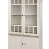 De vitrine MELINDA met 2 volle deuren en 2 glazen deuren is uitgevoerd in zwart. De planken zijn gemaakt van massief hout en teakfineer. De structuur is gemaakt van massief hout Damar. De structuur van de deuren is van mahoniehout. De handvatten zijn van zwart metaal. De combinatie van zwart en hout maakt de kast zeer elegant,