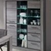 Prachtige vitrine WIVA met LED verlichting is gerealiseerd in ecologische spaanplaat met houtdecor portland en artisan wood. De vitrine is afgewerkt met stijlvolle zwarte poten. Combineer deze vitrine met andere meubelen uit dezelfde reeks.