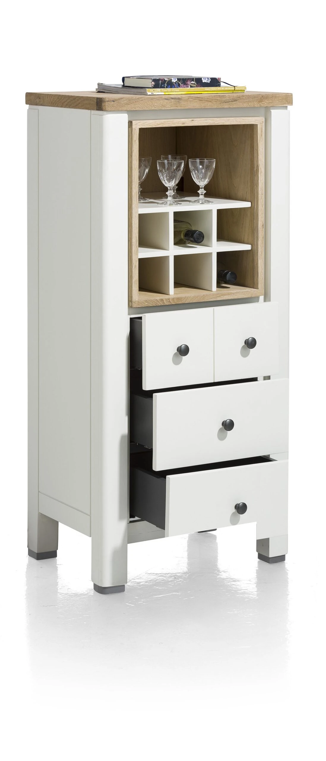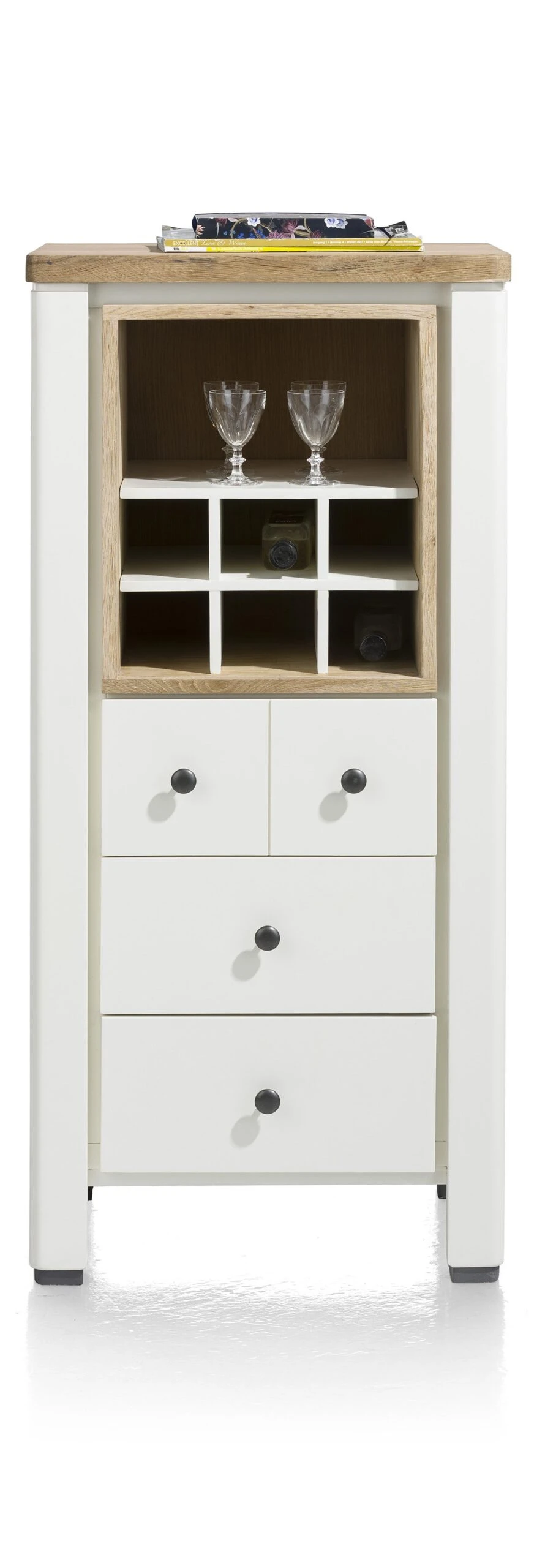 Prachtige winjkast die behoort tot de magnifieke collectie ARIZONA. De meubelen uit deze collectie zijn gerealiseerd in massief en fineer eikenhout gecombineerd met MDF. De mix tussen railway bruin en wit zorgt voor een natuurlijke en tijdloze sfeer.