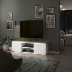 Om jouw interieur op te vrolijken kan je kiezen voor deze leuke woonkamercollectie MARNIX met praktische meubelen gerealiseerd in decor imitatie hout. Elk meubel is zorgvuldig vervaardigd en vult de ruimte met een warme sfeer. De vitrine is bovendien voorzien van verlichting zodat je je uitgestalde items extra in de kijker kan plaatsen.