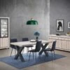 Tweekleurige woonkamer in decor imitatie hout met imitatie keramisch inlegwerk voor een stijlvolle toets. De collectie RINUS bestaat uit heel wat diverse opbergmeubelen die jouw interieur naar een hoger niveau zal tillen.